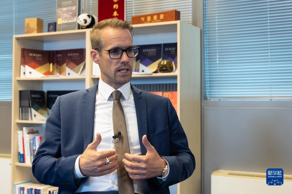 ?10月13日,匈牙利約翰·馮·諾伊曼大學(xué)歐亞中心主任霍爾瓦特·列文特在匈牙利布達(dá)佩斯接受新華社記者專訪。新華社發(fā)(弗爾季·奧蒂洛攝)