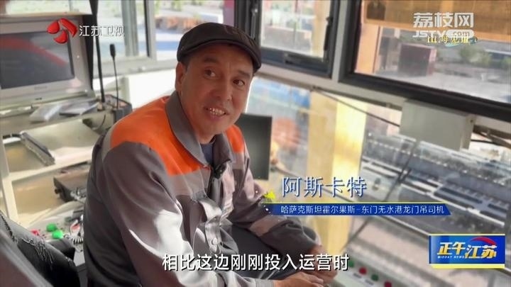 哈薩克斯坦霍爾果斯-東門無水港龍門吊司機阿斯卡特說:“相比這邊剛剛投入運營時,運輸量有非常明顯的增加。原來每天1-2列,現(xiàn)在7-8列通過。我收入有增多了,來這之前是3個小孩,現(xiàn)在是5個小孩?!?/p>