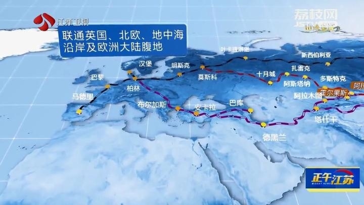 在西端,聯(lián)通英國、北歐、地中海沿岸及歐洲大陸腹地;