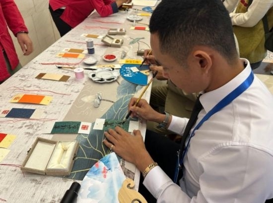 新華網(wǎng)北京10月23日電(記者王艷剛)10月20日至21日,首屆國際傳播“絲路獎”獲獎嘉賓在北京近距離體驗中國傳統(tǒng)工藝景泰藍(lán)和中國書法。
