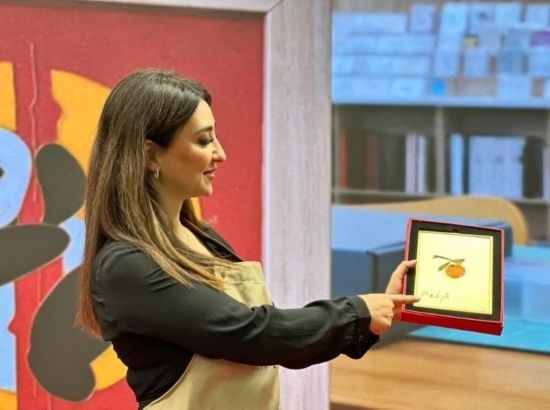 嘉賓展示景泰藍(lán)作品“柿柿如意” (新華社記者王艷剛攝)