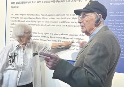 走進(jìn)博物館,代表團(tuán)成員在一張張老照片、一件件珍貴實(shí)物前流連,認(rèn)真聆聽講解,還不時(shí)與身邊親友交談。麥克馬倫在展板上看到自己的名字后,興奮地向妻子珍妮弗指了指名字的位置。他曾擔(dān)任B—24轟炸機(jī)機(jī)頭炮手和助理飛行機(jī)械師,在昆明和成都參加對日作戰(zhàn)。看著玻璃柜里的展品,他感慨:“美中兩國人民的友誼將延綿不斷?!?/p>