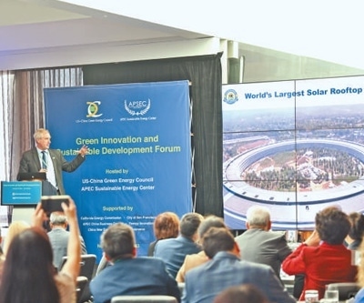 當(dāng)?shù)貢r間11月13日,由亞太經(jīng)合組織可持續(xù)能源中心和美中綠色能源促進(jìn)會共同主辦的“綠色創(chuàng)新與可持續(xù)發(fā)展論壇”在舊金山舉行,與會嘉賓就清潔能源、綠色發(fā)展、共同應(yīng)對氣候變化等議題交流研討。本報北美中心分社 伊芙莉·妮可·梅菲爾德攝