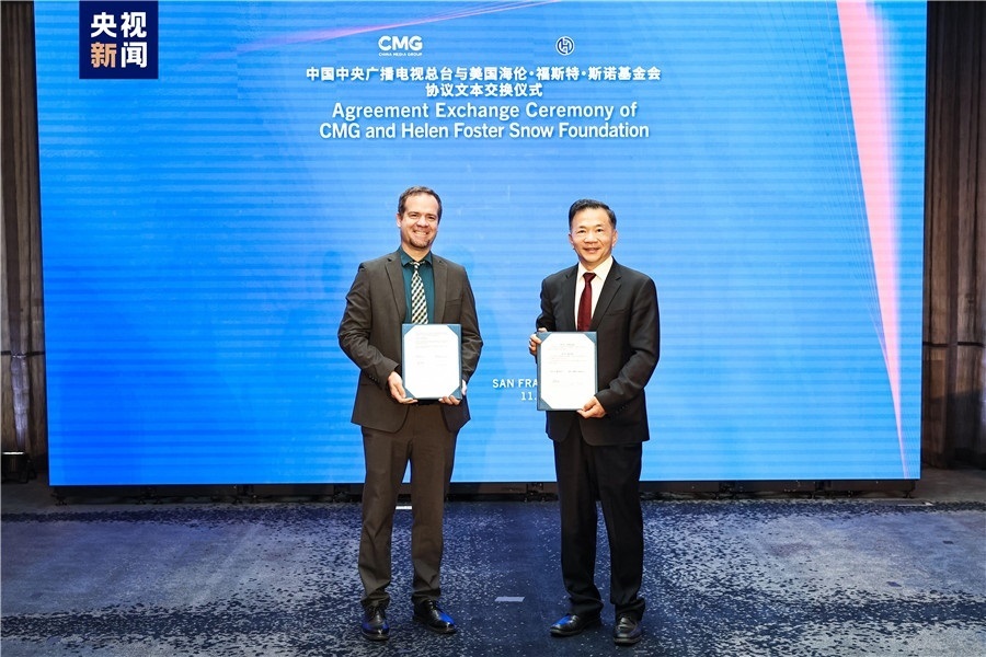 活動上,中央廣播電視總臺分別與美中青少年學(xué)生交流協(xié)會、美中航空遺產(chǎn)基金會、海倫·福斯特·斯諾基金會交換合作備忘錄,在文化、新聞、教育等多個領(lǐng)域展開合作,共同為推動中美人文交流注入新動能。