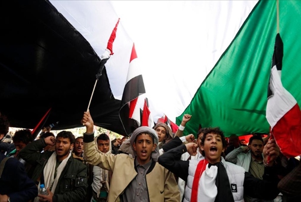 2023年10月20日,在也門(mén)首都薩那,人們參加聲援巴勒斯坦的游行。新華社發(fā)(穆罕默德·穆罕默德攝)