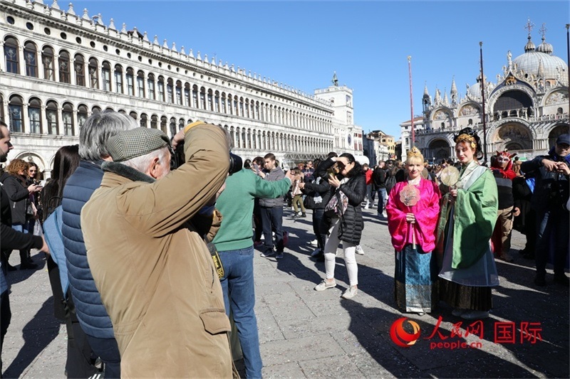 隊伍到達(dá)圣馬可廣場后,活動正式開始。出席活動的中國駐米蘭總領(lǐng)事劉侃表示,活動為威尼斯狂歡節(jié)增添了中國文化元素,是不同文明交流互鑒的生動體現(xiàn)。威尼斯副市長瑪爾表示,感謝華人為當(dāng)?shù)厣鐣l(fā)展所作貢獻(xiàn),表示將進(jìn)一步發(fā)展與蘇州的友好關(guān)系。