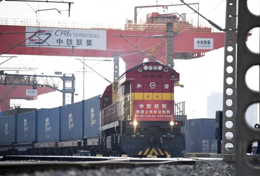 ?3月7日,中歐班列(越南·河內(nèi)——中國·西安——匈牙利·布達佩斯)跨境公鐵聯(lián)運班列從西安國際港站駛出。新華社記者李一博攝
