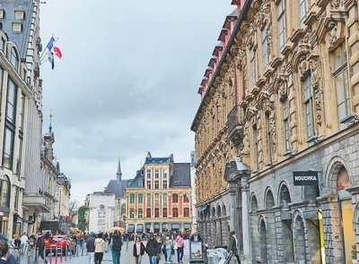 游客在法國(guó)里爾老城漫步。本報(bào)記者 尚凱元攝