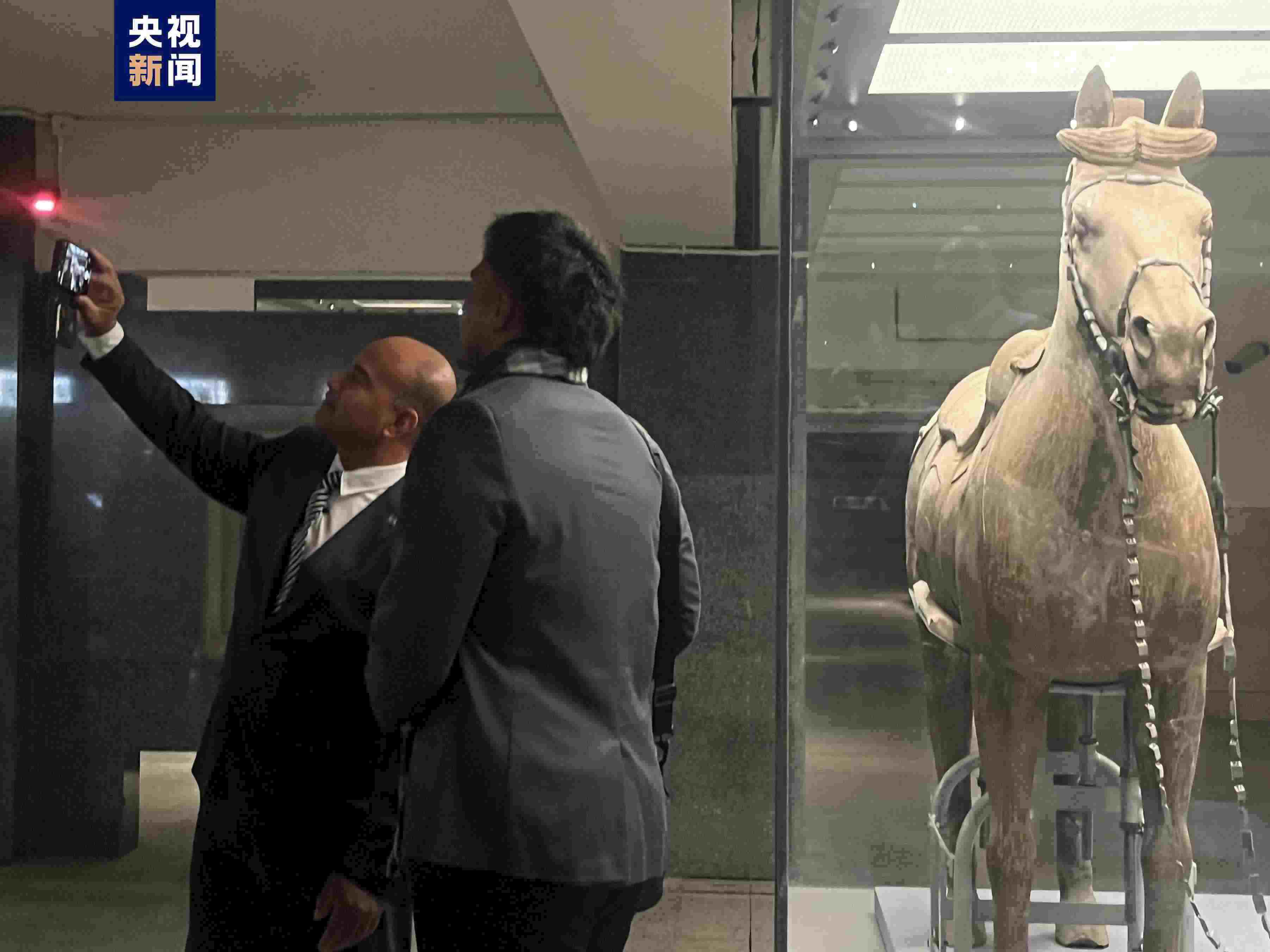 瑙魯總統(tǒng)阿迪昂今天(27日)在陜西西安繼續(xù)訪華之旅。在秦始皇兵馬俑博物館,阿迪昂總統(tǒng)先后參觀了一號坑、三號坑和二號坑,了解秦兵馬俑的歷史。參訪過程中,阿迪昂總統(tǒng)不時拿出手機自拍,記錄這段與古老中國“相遇”的難忘之旅。在接受總臺央視記者采訪時,阿迪昂總統(tǒng)表示,自己一直非常期待能夠來到這里,希望通過此訪增進對中國的了解,也相信瑙中兩國加強合作,將助力瑙魯實現(xiàn)進一步發(fā)展與繁榮。