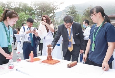 2023年7月3日,第三屆文明交流互鑒對話會(huì)暨首屆世界漢學(xué)家大會(huì)與會(huì)嘉賓體驗(yàn)非遺拓印技藝。劉馳攝