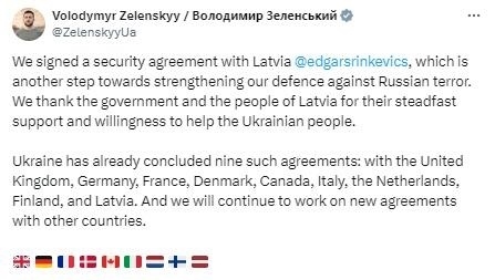 同日早些時(shí)候,澤連斯基在另一條貼文中宣布,烏克蘭已經(jīng)與英國(guó)、德國(guó)、法國(guó)、丹麥、加拿大、意大利、荷蘭、芬蘭和拉脫維亞簽署了雙邊安全協(xié)議。他還稱,“烏克蘭將繼續(xù)努力與其他國(guó)家達(dá)成新協(xié)議?!?/p>