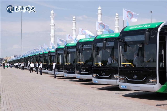 中哈合作帶來(lái)的一個(gè)改變是,2022年,阿斯塔納的城市路線上投放了100多輛電動(dòng)公交車,2023年底,阿斯塔納的電動(dòng)公交車翻了一倍還多。