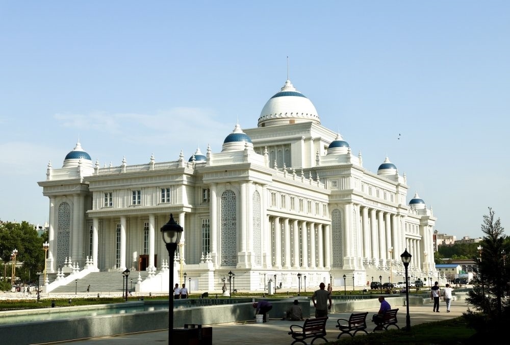 ↑位于杜尚別的塔吉克斯坦議會大樓。 新華社記者 周荻瀟 攝