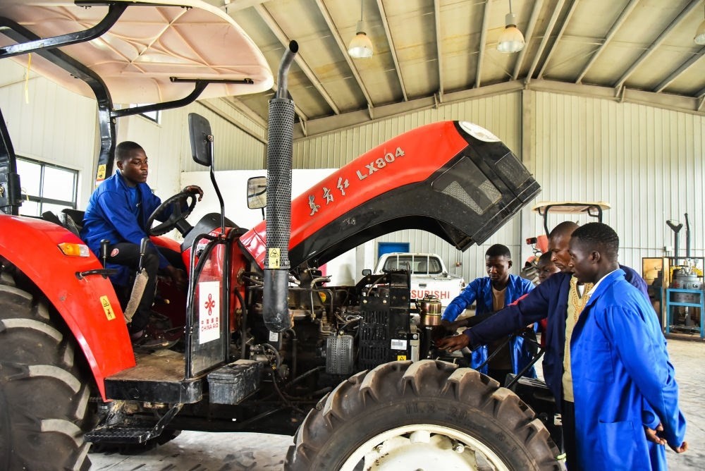 2023年1月12日,學(xué)生在喀麥隆亞巴西農(nóng)業(yè)職業(yè)技術(shù)中學(xué)上拖拉機實踐課。亞巴西農(nóng)業(yè)職業(yè)技術(shù)中學(xué)由中方援建,是喀麥隆第一所農(nóng)業(yè)技術(shù)學(xué)校。新華社發(fā)(科普索攝)