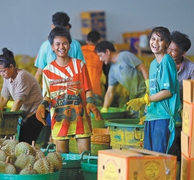 榴蓮是中國(guó)第一大水果進(jìn)口品類。據(jù)統(tǒng)計(jì),2023年中國(guó)進(jìn)口142.6萬(wàn)噸鮮榴蓮,其中92.9萬(wàn)噸來(lái)自泰國(guó)。中國(guó)市場(chǎng)的強(qiáng)勁需求,帶動(dòng)了泰國(guó)水果產(chǎn)業(yè)發(fā)展。泰國(guó)商業(yè)部數(shù)據(jù)顯示,2024年尖竹汶府的榴蓮產(chǎn)量預(yù)計(jì)突破56萬(wàn)噸,同比增長(zhǎng)超4.3%。同時(shí),山竹、龍宮果等熱帶水果的產(chǎn)量也迎來(lái)了快速增長(zhǎng)?!拔彝扑]了不少親朋好友來(lái)水果加工廠上班,收入有保障,旺季的提成更是豐厚!”猜維開(kāi)心地說(shuō)。
