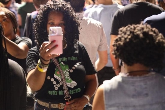 2024年10月25日,美國民主黨總統(tǒng)候選人哈里斯在得克薩斯州休斯敦舉行競選集會(huì),聚焦女性生育自主權(quán)。這是一名女子在集會(huì)上自拍。新華社記者徐劍梅攝