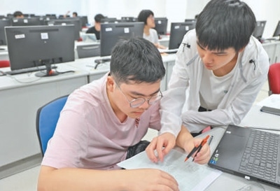 廈門大學(xué)馬來(lái)西亞分校能源與化工學(xué)院工程制圖課上,兩名學(xué)生在討論作業(yè)。