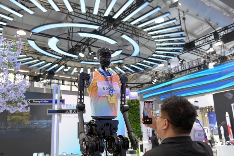 9月10日,參展者在服貿(mào)會展廳的北京經(jīng)濟技術(shù)開發(fā)區(qū)展位拍攝機器人。