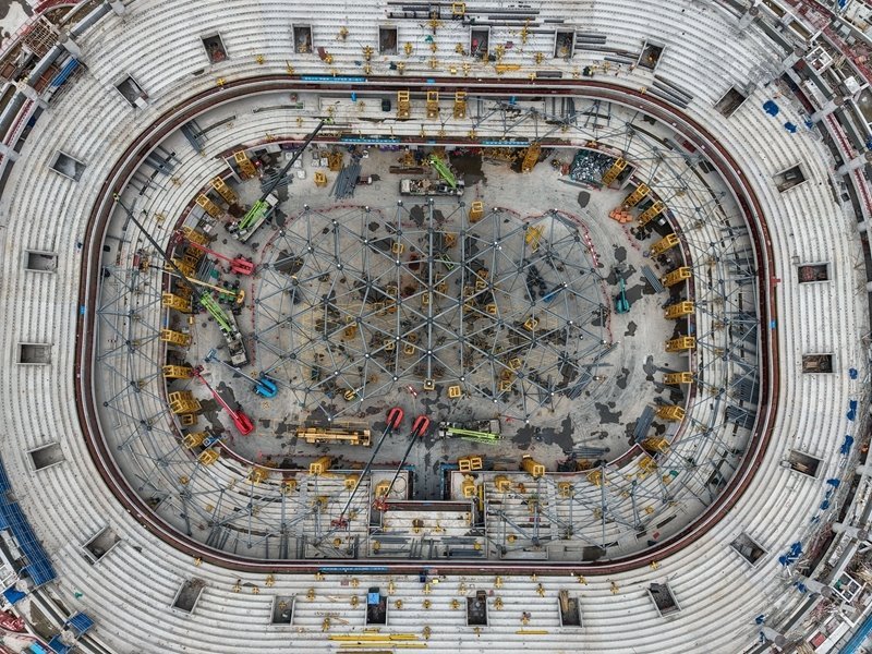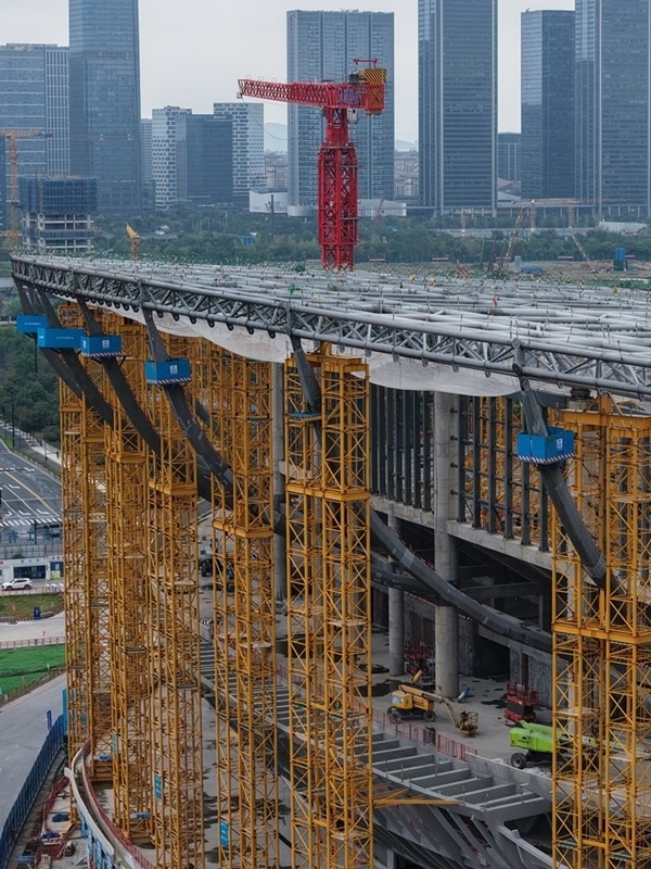 目前,體育館及游泳跳水館工程主體結(jié)構(gòu)全面封頂,已進(jìn)入大規(guī)模鋼結(jié)構(gòu)施工階段;足球場(chǎng)工程鋼屋蓋整體進(jìn)度過半,主體結(jié)構(gòu)已完成90%,項(xiàng)目建設(shè)正穩(wěn)步推進(jìn)。