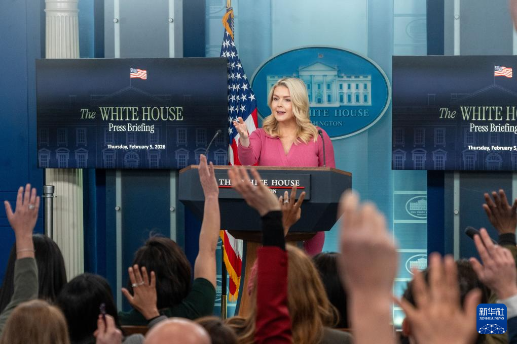 2月5日,在美國(guó)首都華盛頓白宮,白宮新聞秘書萊維特出席記者會(huì)。新華社發(fā)(李源清攝)