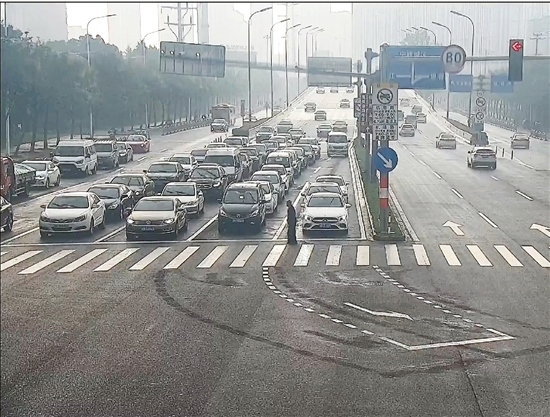 接下來會發(fā)生什么呢?通過視頻監(jiān)控可以看到,東西向的車輛有一部分開始動起來,但老人左手邊三個車道的車都紋絲不動,等著老人安全走過來。