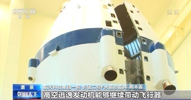 航天科技集團(tuán)一院長征二號F火箭總指揮 荊木春:飛行到120秒的時候,就把逃逸塔拋掉了,這個時候如果再需要進(jìn)行逃逸,我們就在整流罩上又裝了4臺叫高空逃逸發(fā)動機(jī)。出現(xiàn)故障的話,高空逃逸發(fā)動機(jī)能夠繼續(xù)帶動飛行器脫離故障火箭。