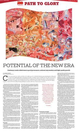 作為中國日報(bào)外籍記者,穆迪一共發(fā)表了700多篇封面報(bào)道和評論,總計(jì)100多萬字。從2019年為《中國日報(bào)》“慶祝新中國成立七十周年專刊”撰寫題為《新時(shí)代,共未來》的封面文章,到今年建黨百年??系男侣劮治觥缎聲r(shí)代的潛力》,“新時(shí)代中國”是穆迪近年寫作的主題。