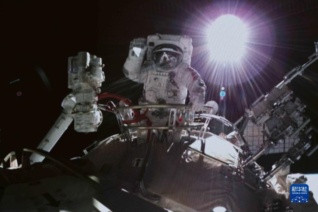 這是2021年11月7日在北京航天飛行控制中心拍攝的神舟十三號(hào)航天員翟志剛出艙畫(huà)面。新華社發(fā)(郭中正 攝)