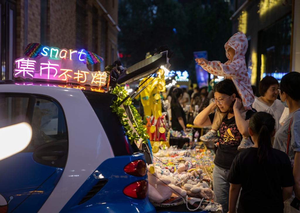 7月2日,游客在寧夏銀川市建發(fā)大閱城特色夜市購物。當(dāng)日,第三屆“寧夏夜綻生活節(jié)”在寧夏銀川市建發(fā)大閱城中街拉開帷幕,吸引眾多游客前來體驗城市夜生活。新華社記者楊植森攝