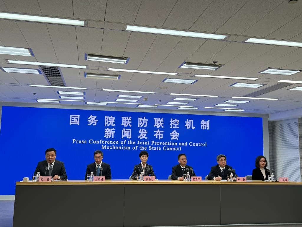 國務院聯(lián)防聯(lián)控機制新聞發(fā)布會現(xiàn)場。新華社記者 顧天成攝