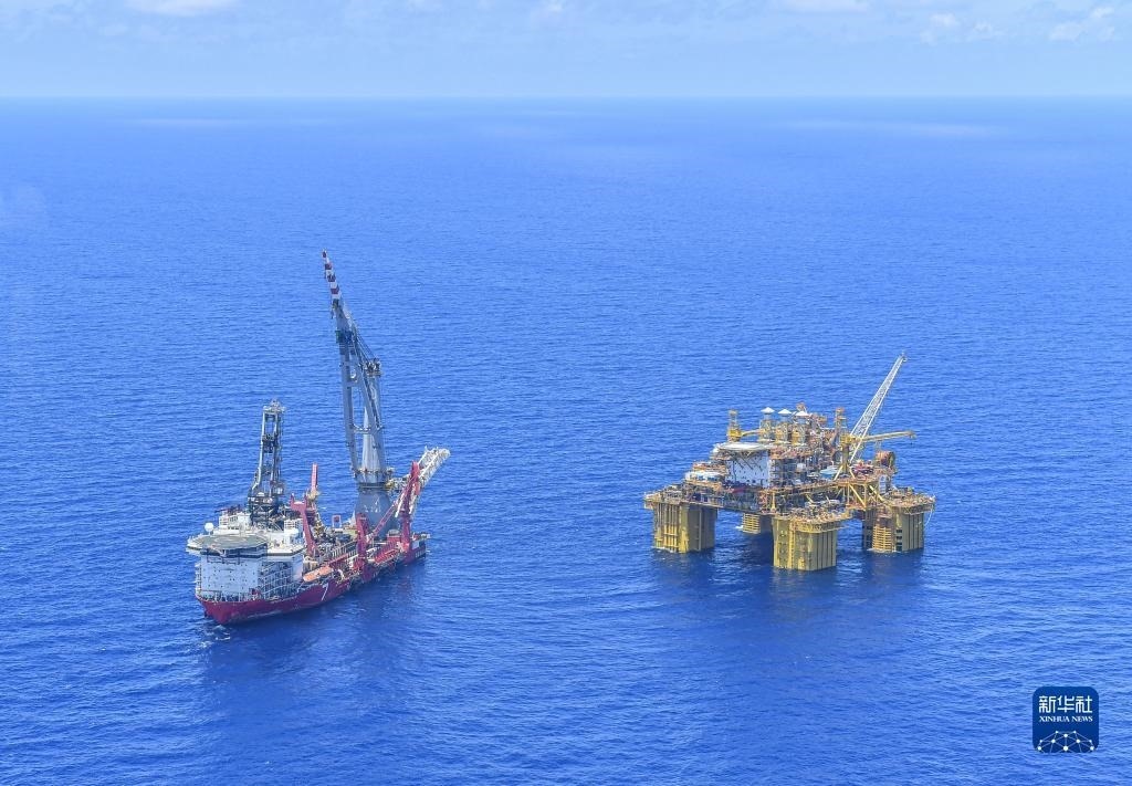 在海南陵水海域拍攝的“深海一號(hào)”大氣田(2021年5月12日攝)。新華社記者 蒲曉旭 攝