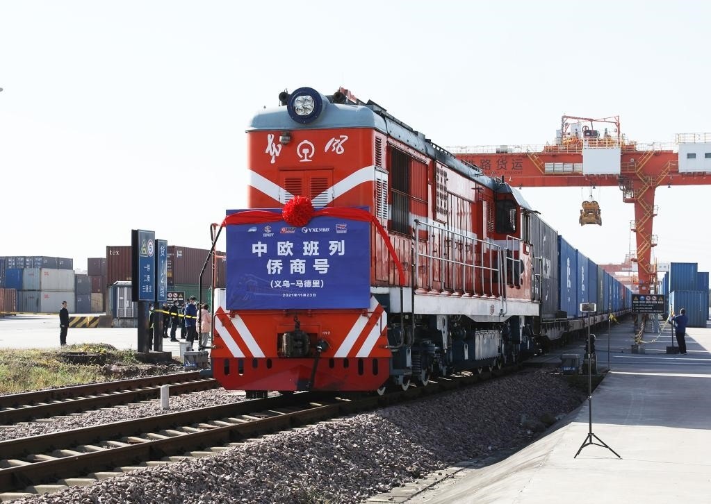 2021年11月23日,滿載著100個標箱的“僑商號”中歐(義新歐)班列從鐵路義烏西站出發(fā),駛向西班牙首都馬德里。