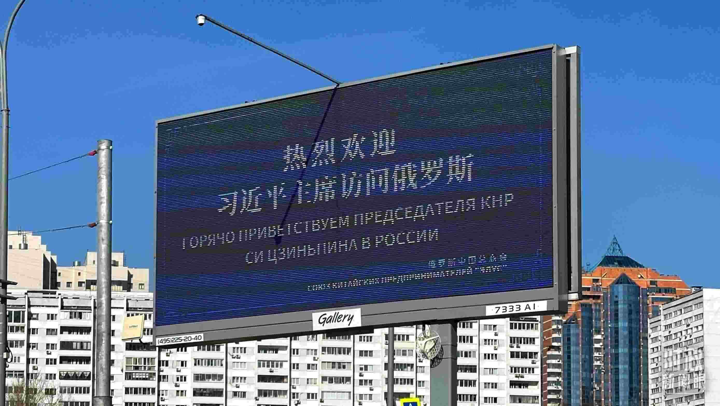 △莫斯科街頭,“熱烈歡迎習(xí)近平主席訪問(wèn)俄羅斯”的歡迎標(biāo)語(yǔ)。(總臺(tái)央視記者覃思拍攝)