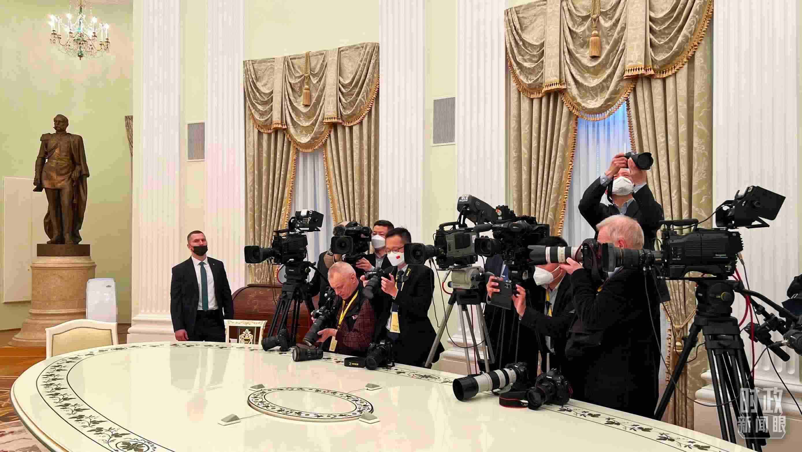 △3月20日下午,中外記者前往克里姆林宮拍攝中俄兩國(guó)元首會(huì)見(jiàn)。(總臺(tái)央視記者程鋮拍攝)