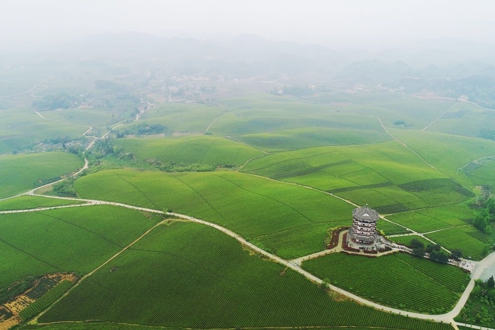貴州省湄潭縣永興鎮(zhèn)萬畝茶海(無人機全景照片,2023年4月4日攝)。新華社記者 歐東衢 攝