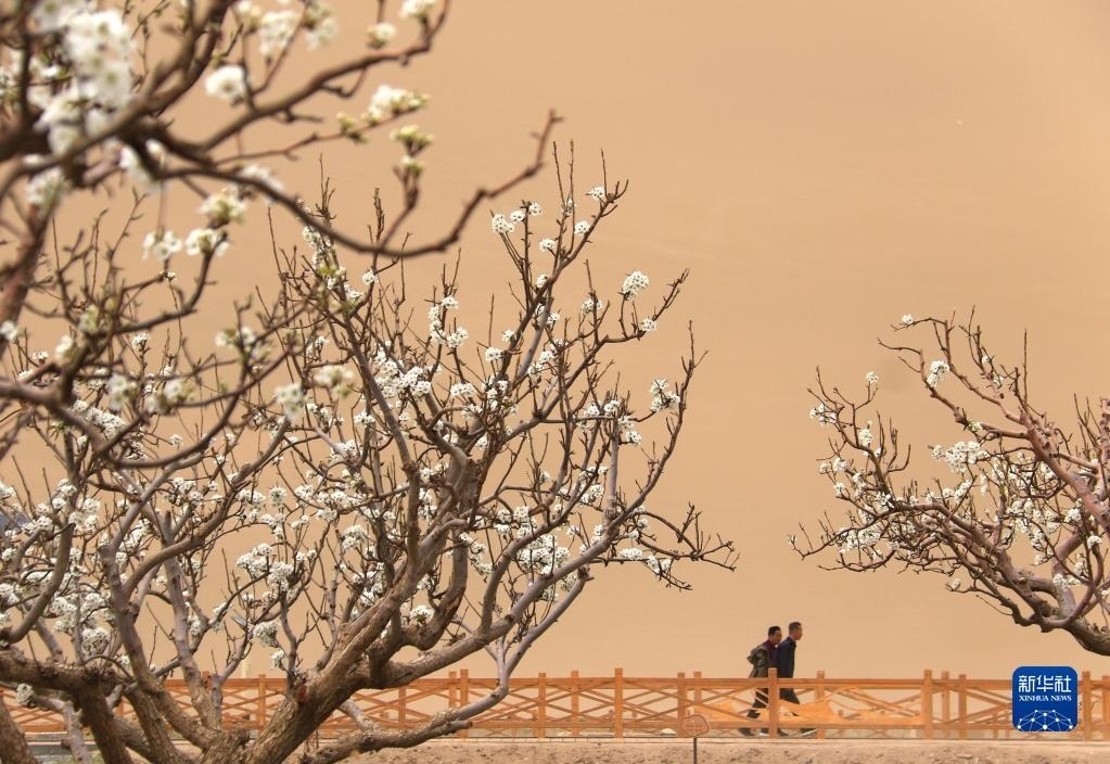 近日,甘肅省敦煌市鳴沙山月牙泉景區(qū)內(nèi)的桃花、梨花、丁香花競相綻放,別有一番韻味。新華社發(fā)(張曉亮攝)