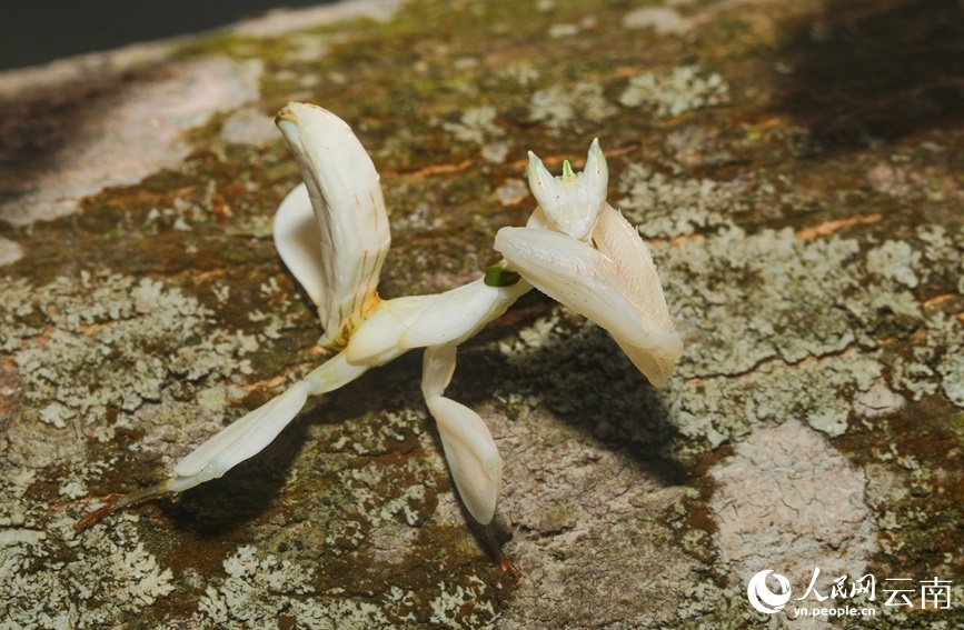 寧洱縣同心鎮(zhèn)林業(yè)和草原服務(wù)中心主任楊夢醒介紹,經(jīng)鑒定,這只白色的蟲子是昆蟲綱花螳科的一種動物,名為蘭花螳螂,是螳螂目中最為漂亮的一種,比較稀有?!拔覀兺ㄟ^查閱資料發(fā)現(xiàn),蘭花螳螂在寧洱縣并無記錄,這次是首次發(fā)現(xiàn)?!?