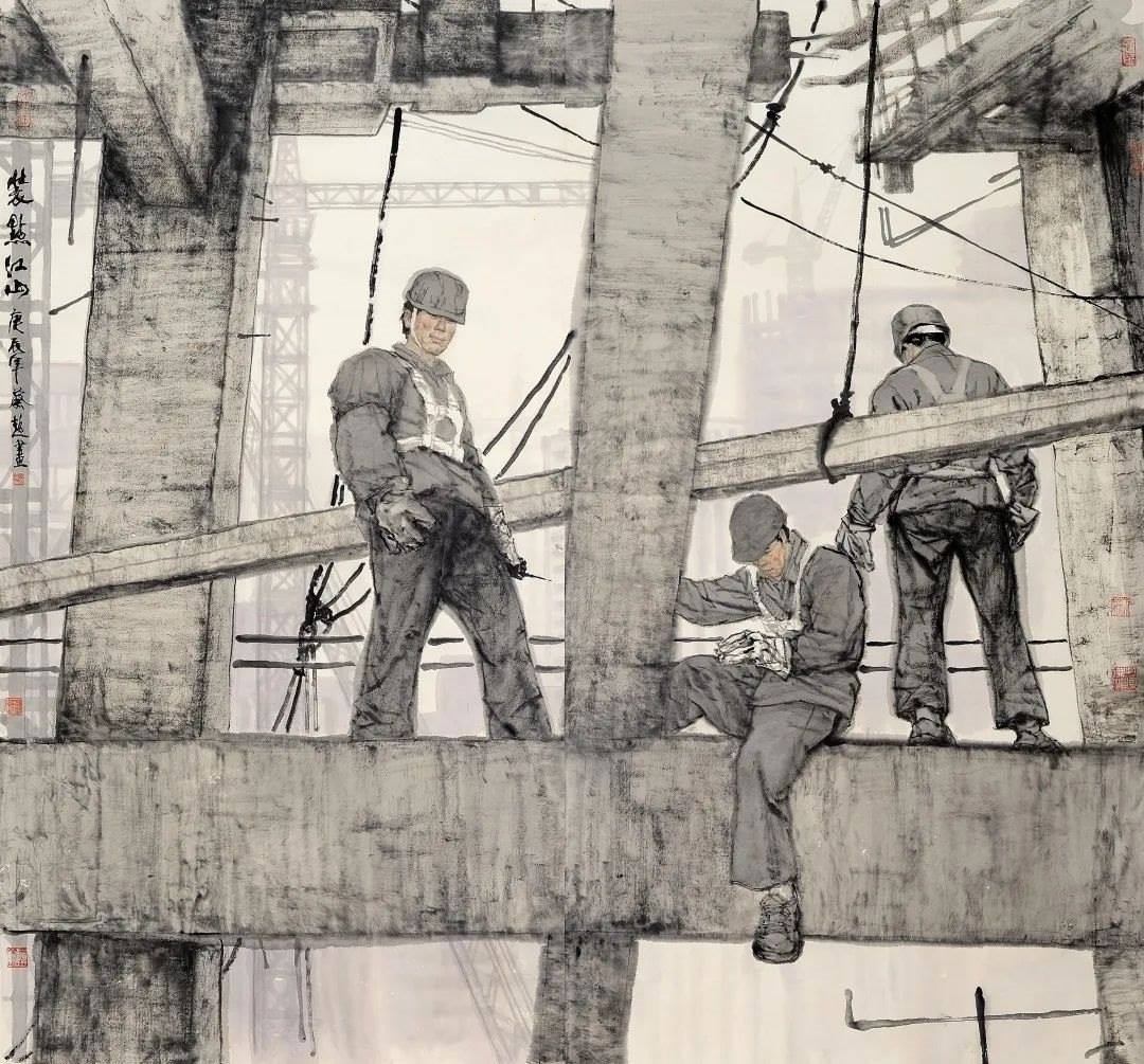 對傳統(tǒng)現(xiàn)實(shí)主義的繼承和拓展。作為一位具備卓越造型能力的人物畫家,蔡超始終堅(jiān)持深入現(xiàn)實(shí)生活,他以敏銳的觀察力和理解力,以豐富的人生閱歷不斷從生活中提煉創(chuàng)作母題,發(fā)掘常人所不易察覺的藝術(shù)趣味。因此,蔡超筆下的人物總是葆有鮮活的生命和氣息,他們不是空洞的“人民”,而是牢固與地氣相接,與時(shí)代共呼吸的真正的“人民”,他創(chuàng)造了嶄新的屬于贛鄱大地的人民形象,這是蔡超對于江西現(xiàn)實(shí)主義繪畫創(chuàng)作最重要的貢獻(xiàn)。同時(shí),蔡超不僅繼承了徐悲鴻、蔣兆和以來中國人物畫創(chuàng)作的優(yōu)良傳統(tǒng),更以“筆墨當(dāng)隨時(shí)代”的勇氣和魄力,在工業(yè)題材領(lǐng)域樹立了令人耳目一新的繪畫范式——這是一個(gè)前無古人的偉大突破。