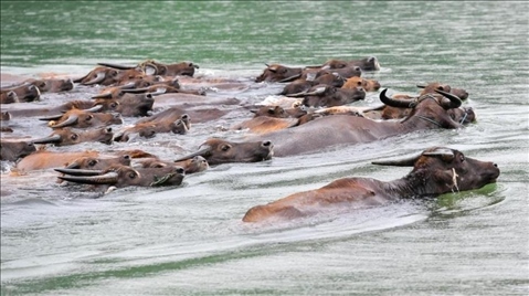四川南充嘉陵江放牛季活動(dòng)啟幕,上演“百牛渡江”場(chǎng)面。