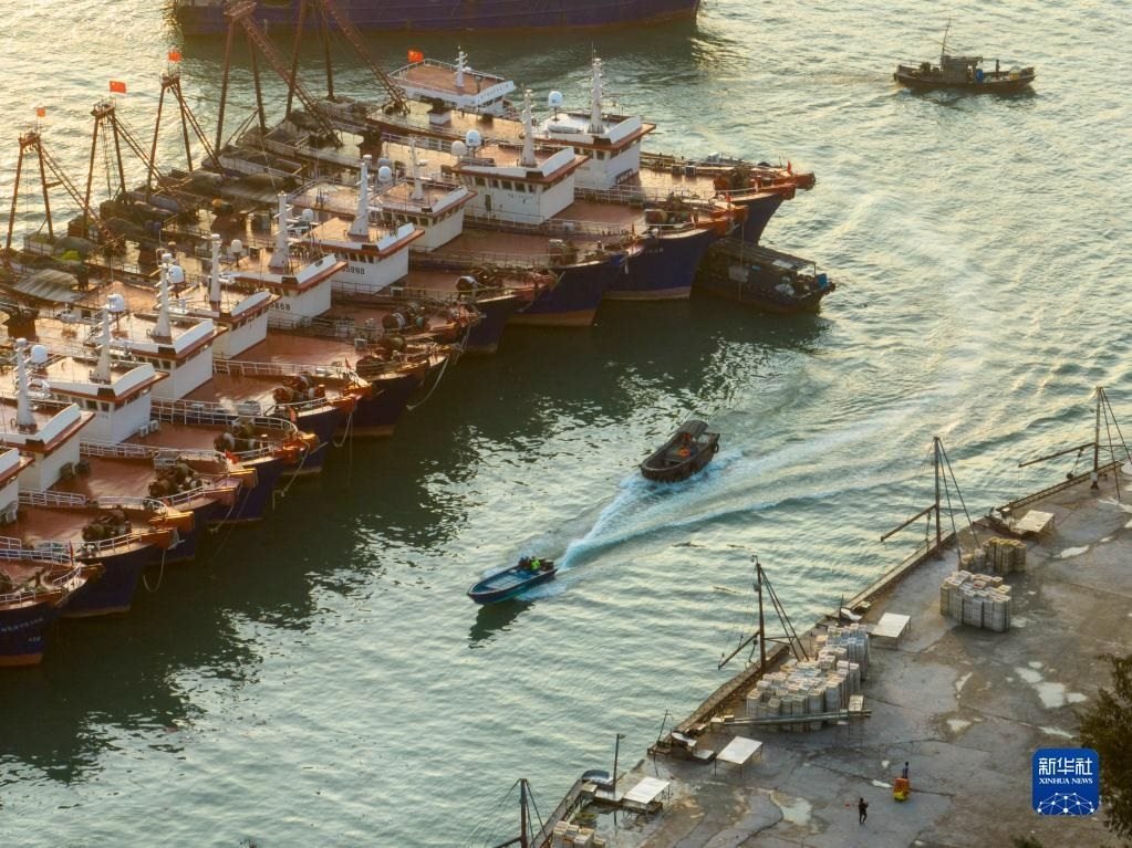 4月30日,準(zhǔn)備休漁的漁船停泊在福建省福州市連江縣苔菉鎮(zhèn)北茭村漁港(無(wú)人機(jī)照片)。