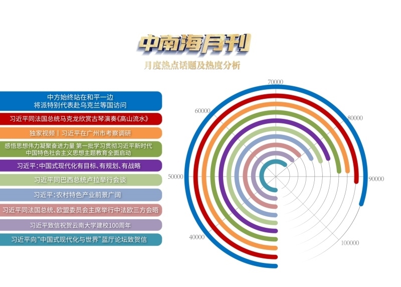 央視網(wǎng)“智聞”系統(tǒng)提取分析4月全網(wǎng)時(shí)政新聞熱點(diǎn)顯示,“中方始終站在和平一邊,將派特別代表赴烏克蘭等國(guó)訪問(wèn)”“中法元首非正式會(huì)晤”“習(xí)近平在廣州市考察調(diào)研”等話題備受關(guān)注。