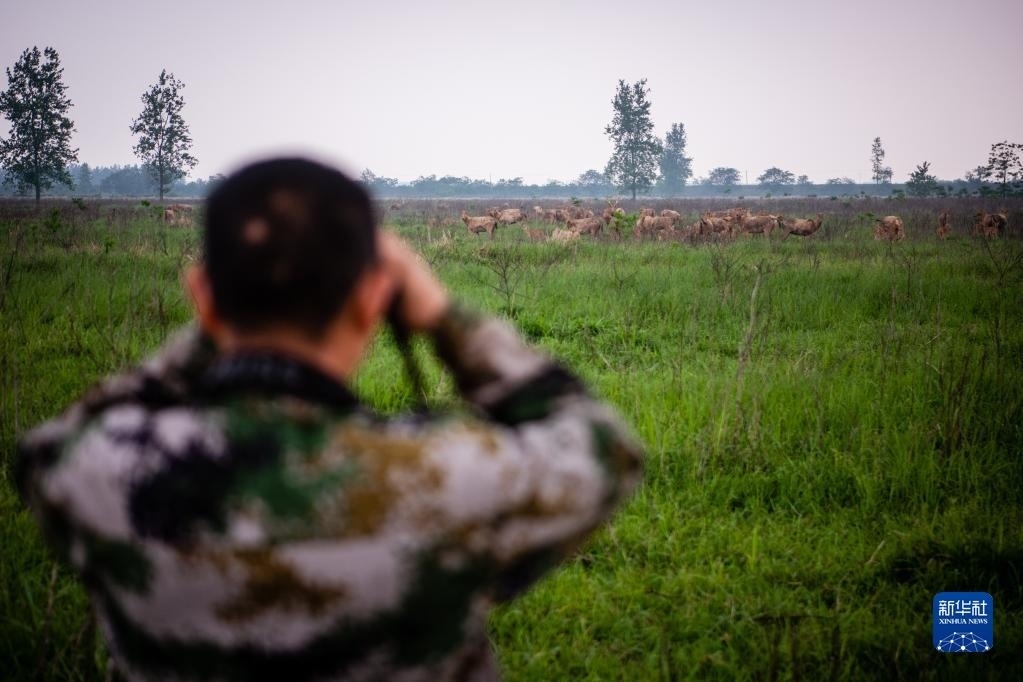 巡護(hù)隊伍通過望遠(yuǎn)鏡、長焦相機、無人機、視頻監(jiān)測塔、紅外相機等工具,對1500余頭麋鹿進(jìn)行日常監(jiān)測、年節(jié)律周期監(jiān)測、種群動態(tài)監(jiān)測,并對保護(hù)區(qū)內(nèi)的氣象數(shù)據(jù)、水文數(shù)據(jù)、地表水質(zhì)數(shù)據(jù)、植被類型以及其他野生動物情況進(jìn)行監(jiān)測記錄。他們還需要承擔(dān)卡口值守、應(yīng)急管理等工作。在他們的悉心照料下,這里成為適宜麋鹿種群棲息的家園。