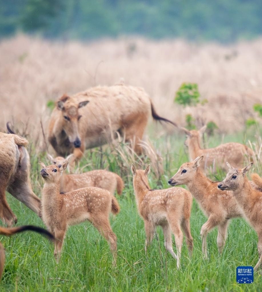 “每年三月下旬到五月下旬是麋鹿的產(chǎn)仔期,我們近期已經(jīng)監(jiān)測到約150頭幼鹿,預(yù)計今年新生麋鹿將超過350頭。”湖北石首麋鹿國家級自然保護(hù)區(qū)管理處工程師張玉銘介紹,孕期的母鹿受到驚嚇容易流產(chǎn),剛出生的幼鹿比較瘦弱生存能力不強,保護(hù)區(qū)將有針對性地加大巡護(hù)和監(jiān)測力度,讓麋鹿安心生產(chǎn),保障“鹿寶寶”健康茁壯成長。