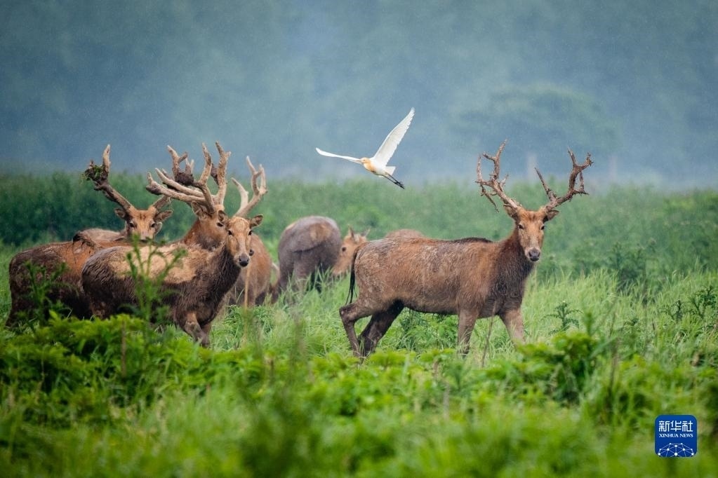 石首麋鹿國家級自然保護(hù)區(qū)成立于1991年,這里牧草豐富,濕地生態(tài)系統(tǒng)完整。30多年間,麋鹿種群繁衍擴散,逐漸形成了保護(hù)區(qū)、東升三合垸、小河楊波坦及湖南洞庭湖4個小種群,從最初引進(jìn)的64頭發(fā)展到2500余頭,全部實現(xiàn)自然繁衍,恢復(fù)了野生習(xí)性。