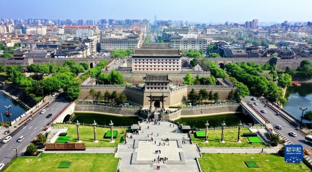 西安城墻永寧門(4月25日攝,無人機(jī)照片)。