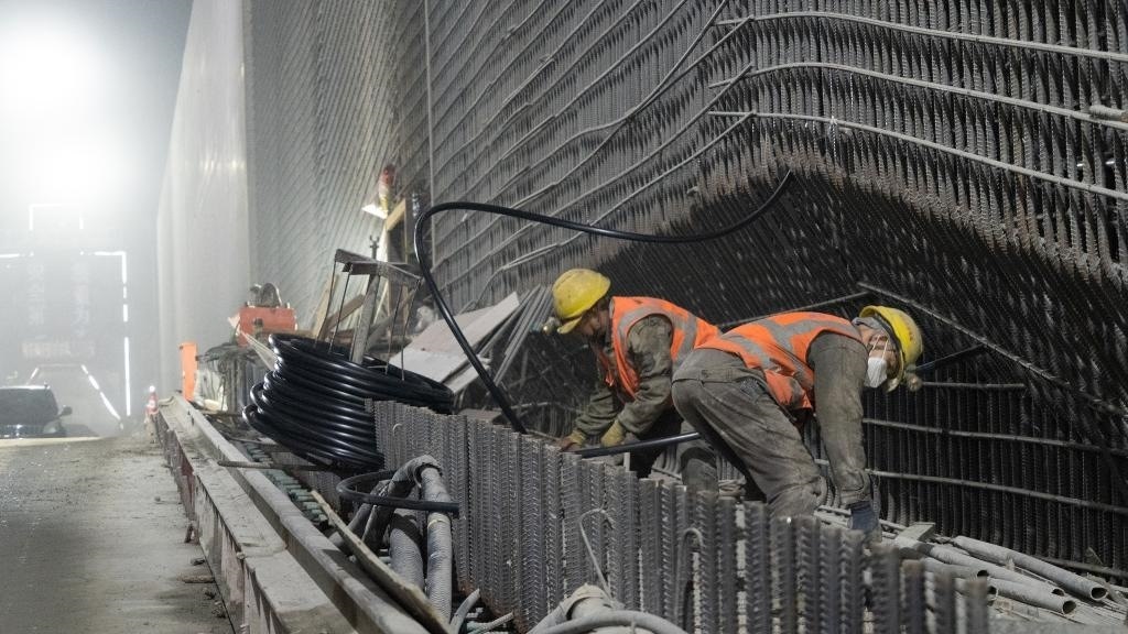 建設(shè)者奮戰(zhàn)在雙江口水電站施工一線。新華社記者楊進(jìn) 攝