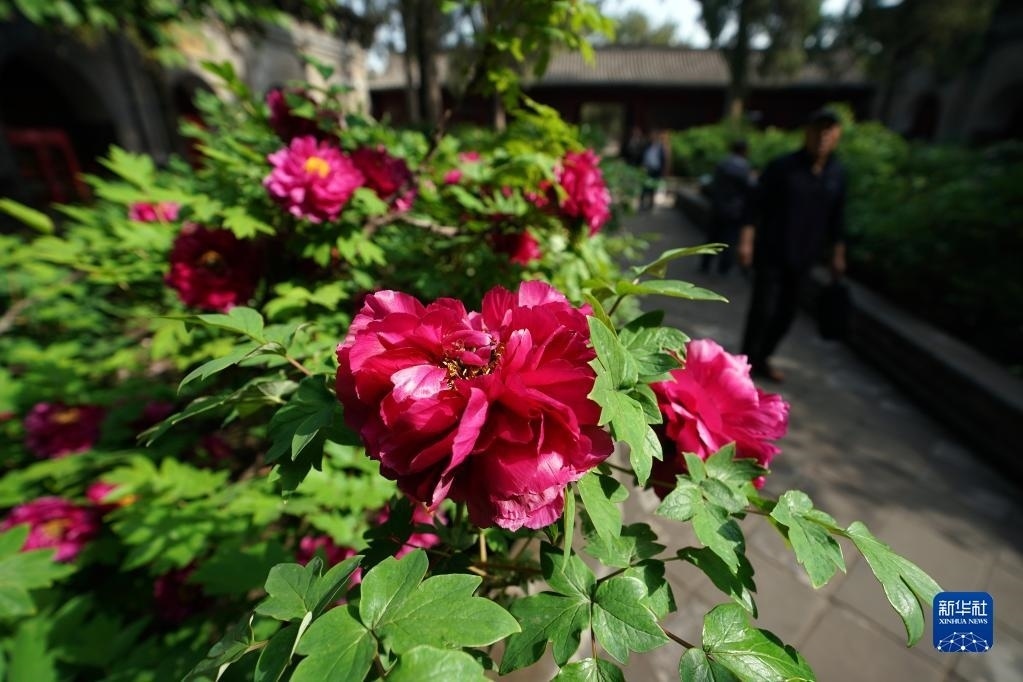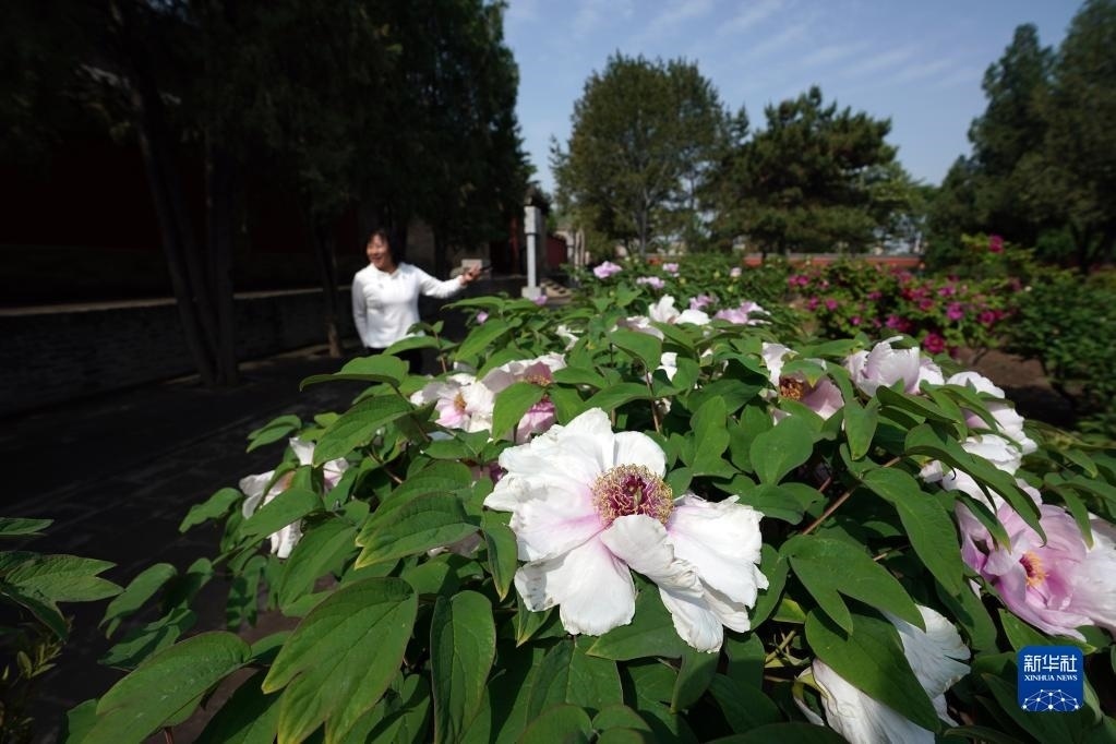 近日,山西太原雙塔寺景區(qū)的數(shù)千株牡丹花競(jìng)相綻放,吸引游人前來(lái)觀花賞景。