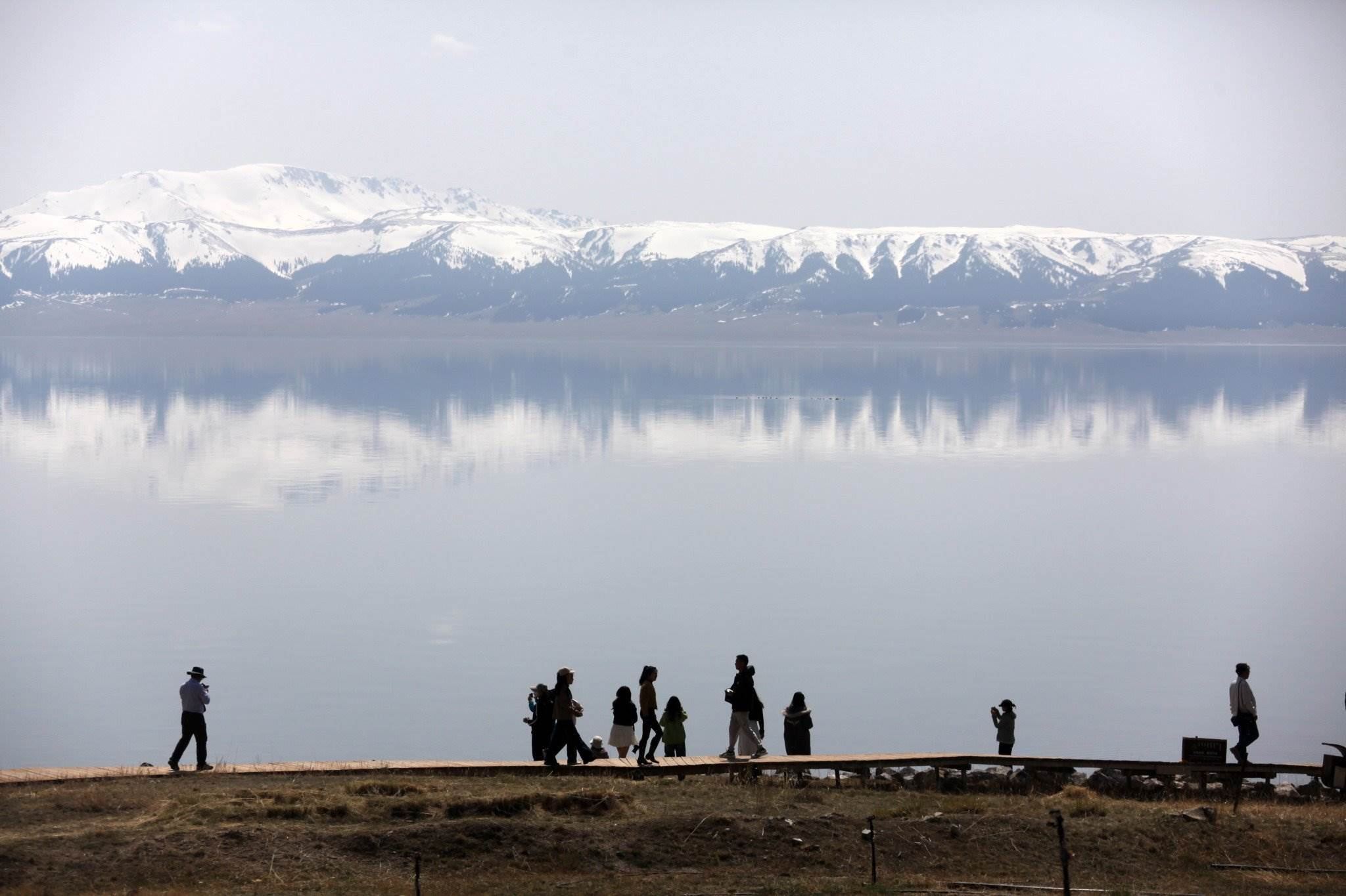 2023年5月8日,新疆博州,賽里木湖景區(qū)風(fēng)光秀美,吸引游客前來游玩。視覺中國