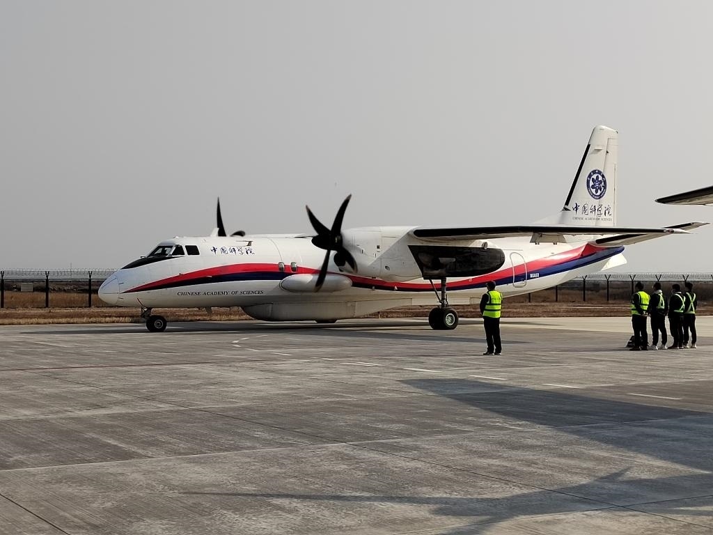探測(cè)實(shí)驗(yàn)中使用的新舟60遙感飛機(jī)。(中科院空天院供圖)