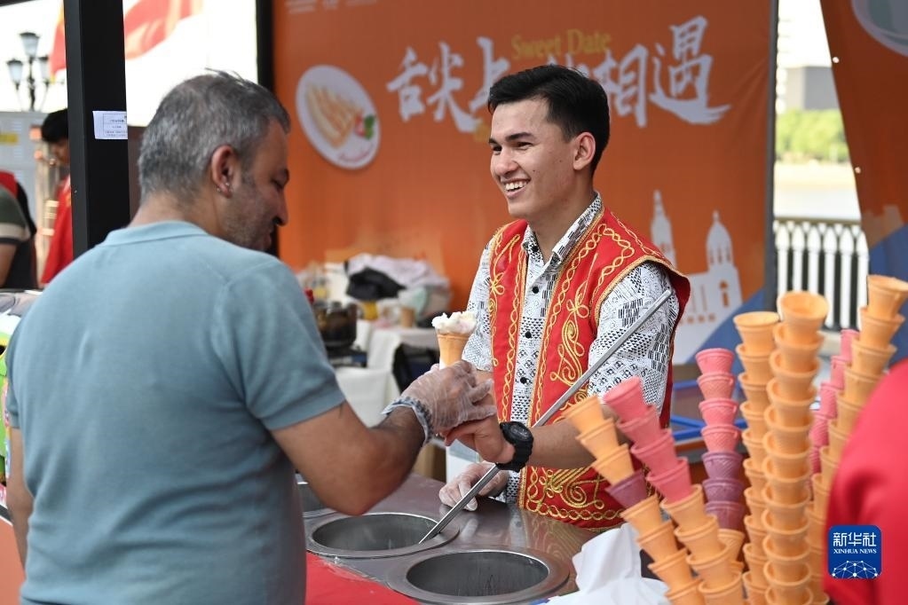 5月15日,游客在現(xiàn)場(chǎng)品嘗土耳其冰淇淋。